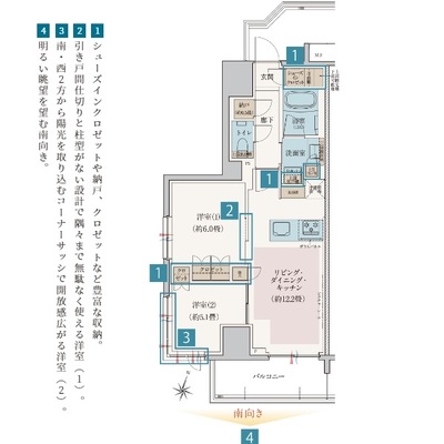 - 面積:55.16㎡〜59.89㎡
