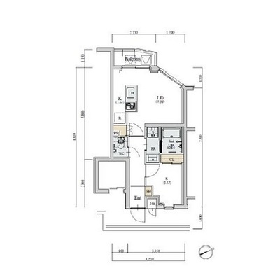 | 間取り | 1R | 専有面積 | 20.74㎡ |