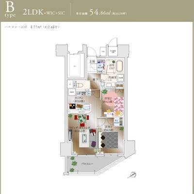 - 面積:55.16㎡〜59.89㎡