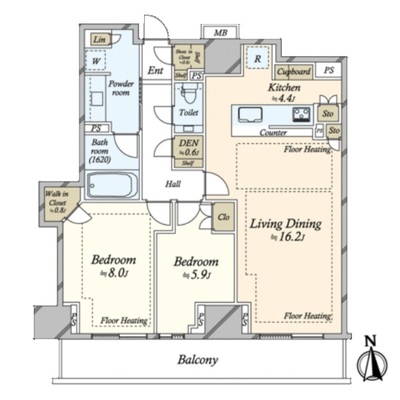 - 面積:55.16㎡〜59.89㎡