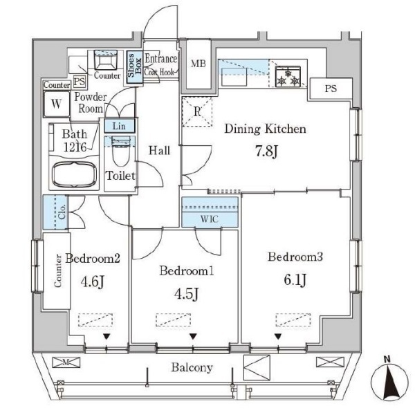 グランマーチ芝公園の 南向き、 3DK、広さ54.01㎡のお部屋です。