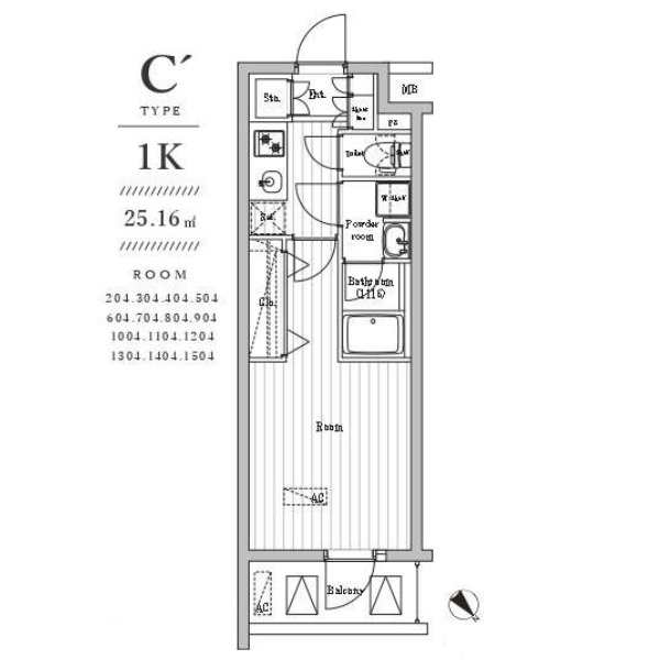 間取り | 1K | 専有面積 | 25.16㎡ |