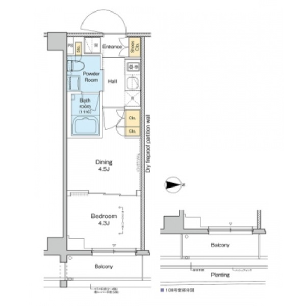 | 間取り/専有面積 | 1DK / 25.2㎡ | 方位 | 東 |