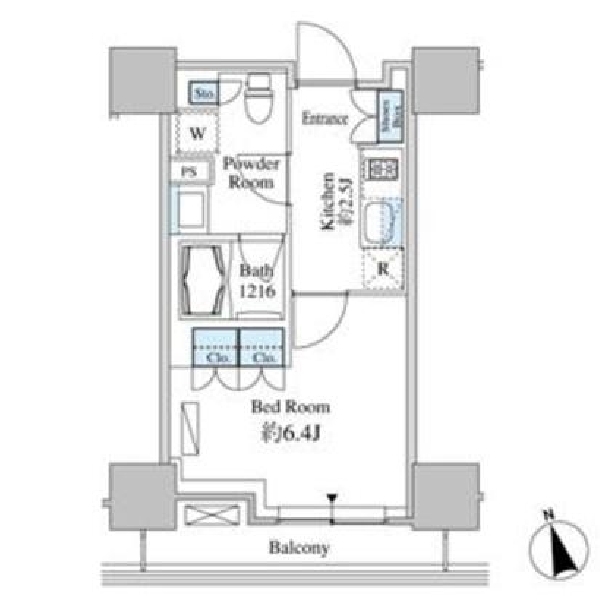 間取り | 1K | 専有面積 | 25.22㎡ |