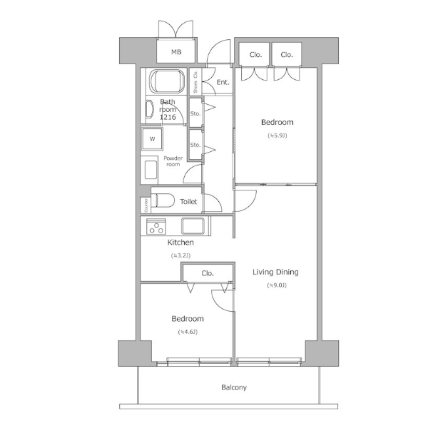 間取り | 2LDK | 専有面積 | 53.06㎡ |