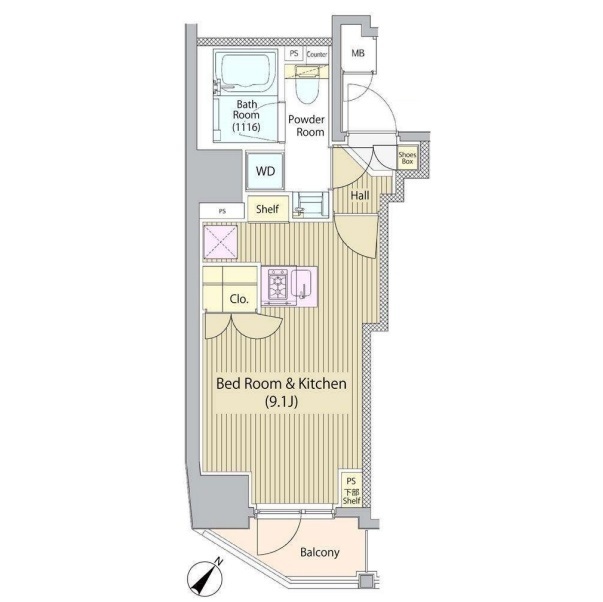 間取り | 1R | 専有面積 | 24.57㎡ |