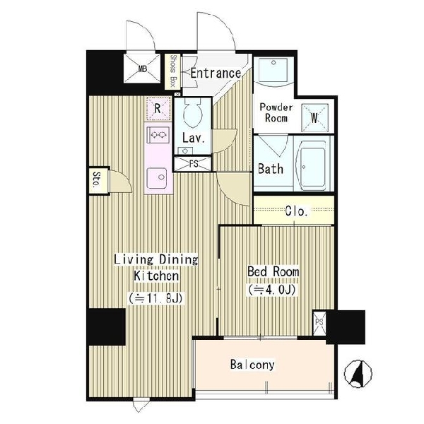 ラティオ南青山の 南向き、 1LDK、広さ39.49㎡のお部屋です。