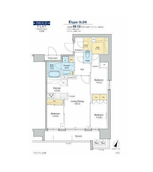 プラウドフラット大井町の 南東向き、 3LDK、広さ59.12㎡のお部屋です。