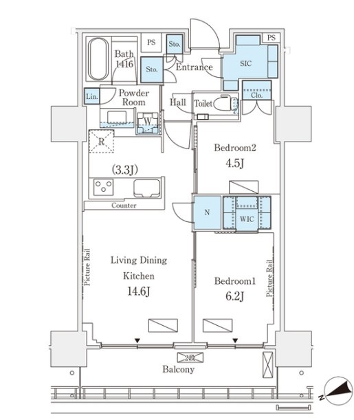 間取り | 2LDK | 専有面積 | 61.21㎡ |