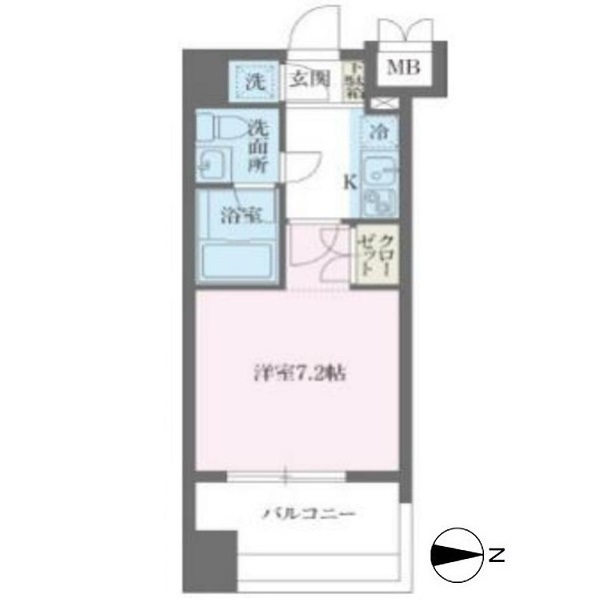 パシフィックレジデンス芝一丁目の 東向き、 1K、広さ23.28㎡のお部屋です。