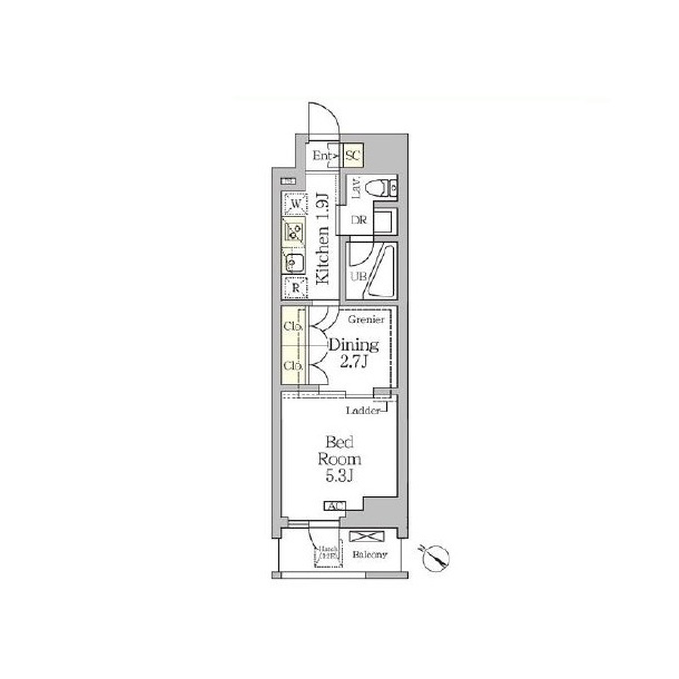 間取り | 1DK | 専有面積 | 25.7㎡ |