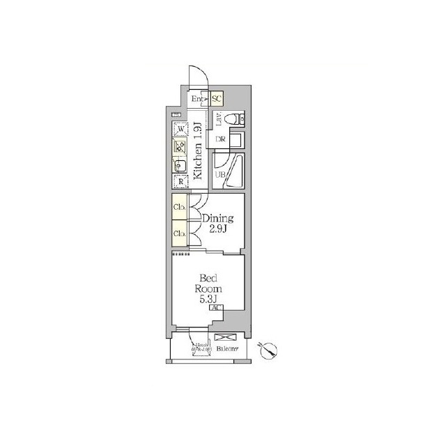 間取り | 1DK | 専有面積 | 25.7㎡ |