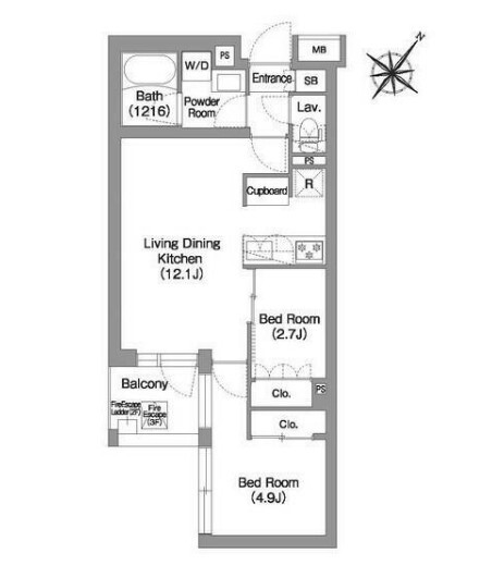 間取り | 2LDK | 専有面積 | 44.07㎡ |