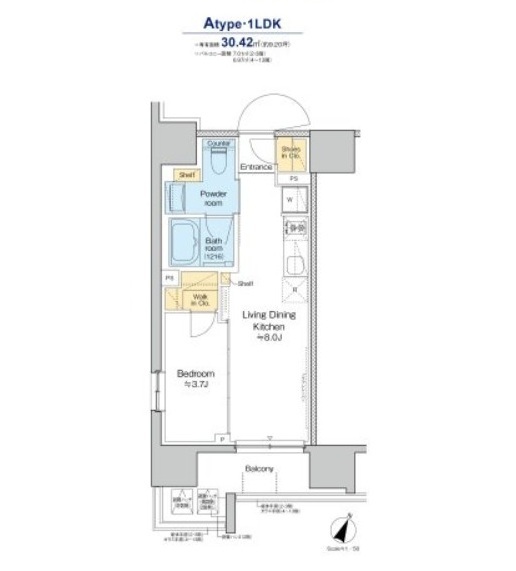 間取り | 1LDK | 専有面積 | 30.42㎡ |