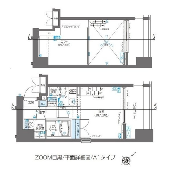 ズーム目黒の 北東向き、 1R、広さ26.68㎡のお部屋です。