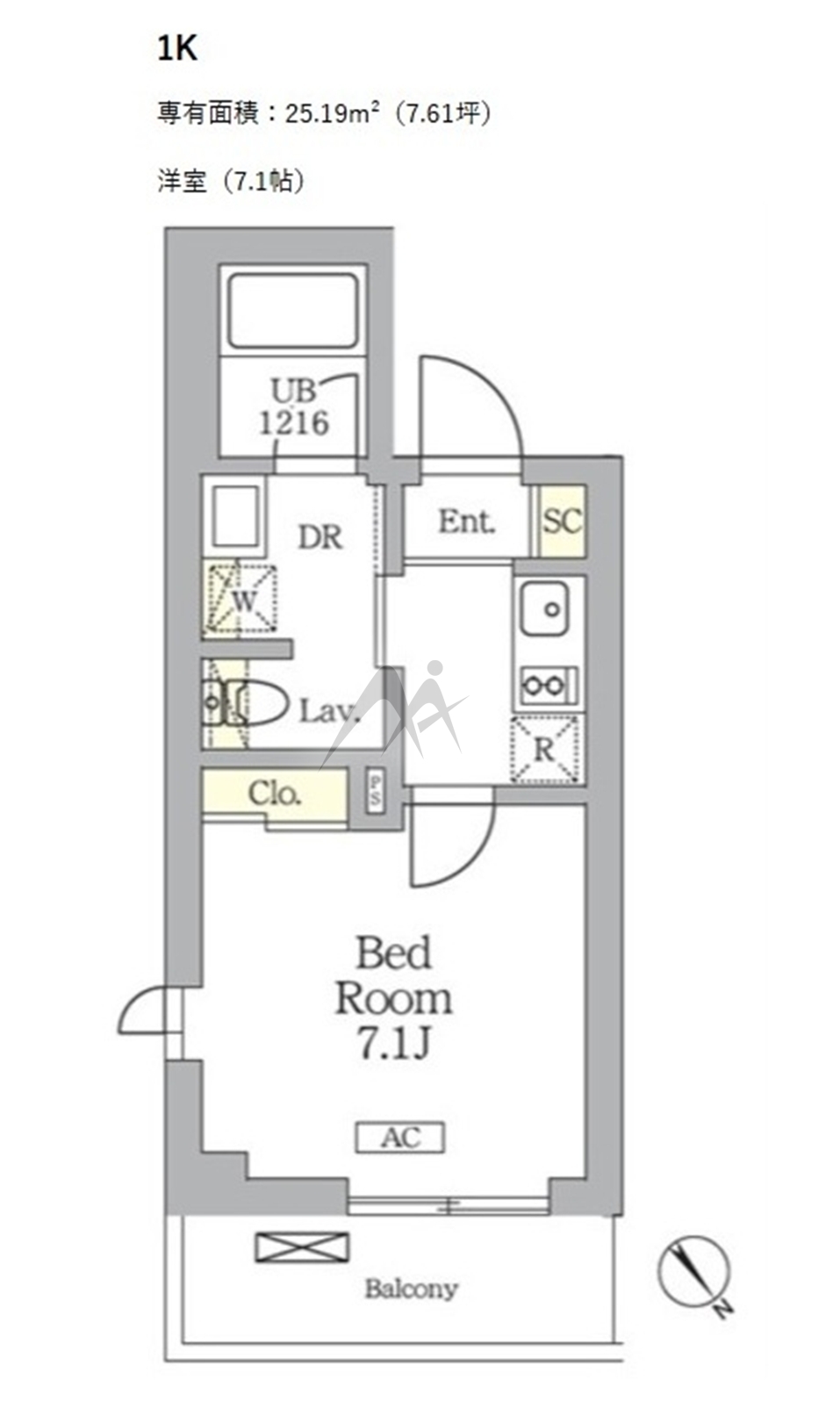 間取り | 1K | 専有面積 | 25.19㎡ |