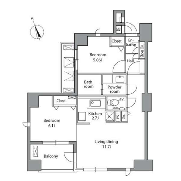 間取り | 2LDK | 専有面積 | 55.52㎡ |