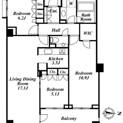 コスモリード南麻布の 東向き、 2SLDK、広さ89.74㎡のお部屋です。
