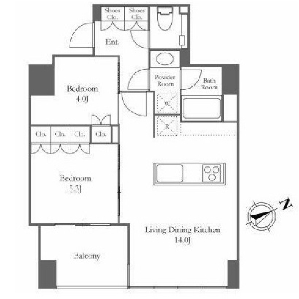 ローレルタワールネ浜松町の 南東向き、 2LDK、広さ52.39㎡のお部屋です。