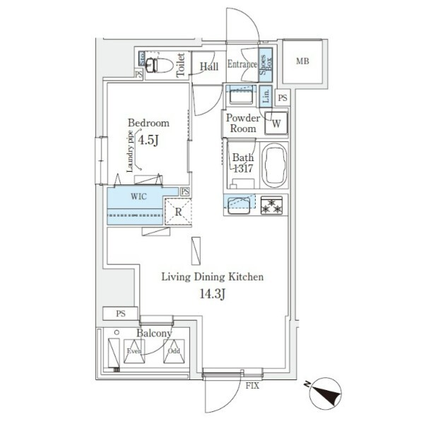 間取り | 1LDK | 専有面積 | 45.06㎡ |