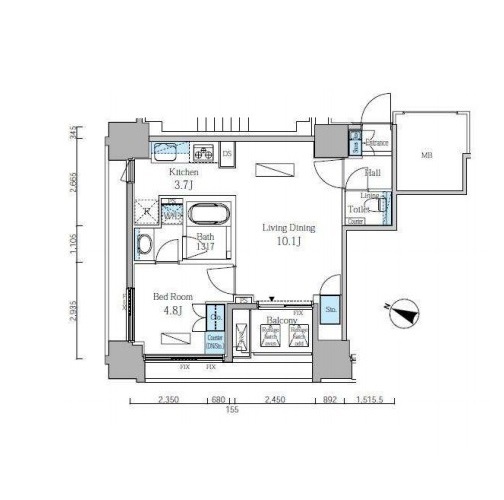 間取り | 1LDK | 専有面積 | 44.36㎡ |
