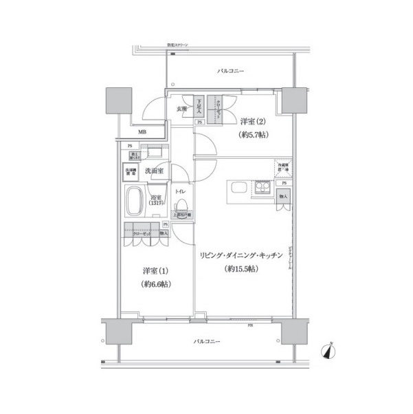 間取り | 2LDK | 専有面積 | 60.6㎡ |