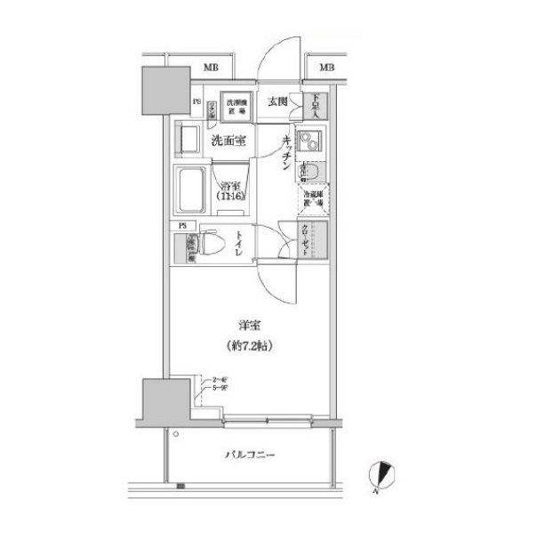 | 間取り/専有面積 | 1K / 25.02㎡ | 方位 | 北 |