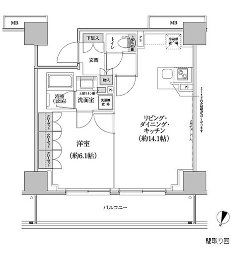 間取り | 1LDK | 専有面積 | 46.91㎡ |