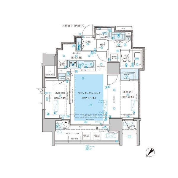 ディームス渋谷本町の 北東向き、 2LDK、広さ55.02㎡のお部屋です。