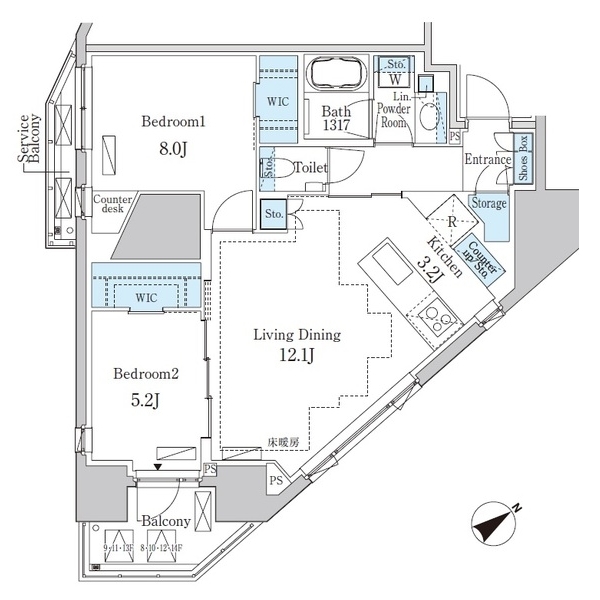 プライムアート白金台の 東向き、 2LDK、広さ67.83㎡のお部屋です。